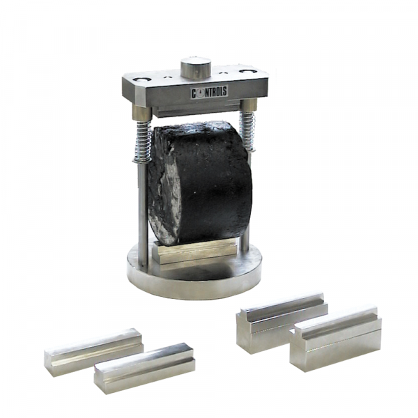 A bench mounted compression frame with motor and worm gear housed within the base unit producing a platen speed of 50.8 mm/min. A limit switch is provided for the bottom limit of travel. The machine is fit with a precision strain gauge load cell and displacement transducer, both connected to the Digimax Touch data acquisition and processing system (which is part of the system) featuring a large display and standard software covering either the Marshall or the Indirect tensile test. For more details see PC software.