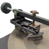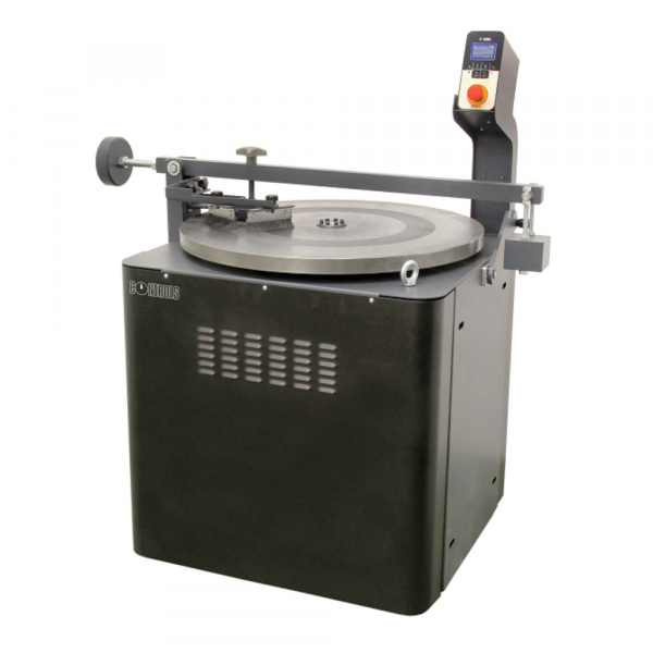 The disc abrader conforming to Böhme method consists of a rotating wheel made of cast iron, 750 mm dia., with a defined test track to receive the abrasive material (white corundum sand) and a no-vibration specimen holder with a two arms lever loading device.