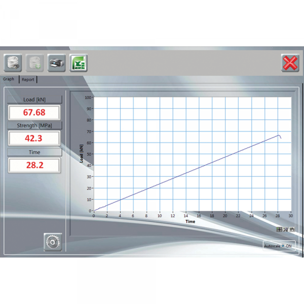 This software provides the data acquisition in real time throughout the test execution up to the specimen failure. All readings are displayed both as graphical and numerical format and stress vs. time plot is traced out in real time. The advanced functions for data base management provide an easy navigation of all saved data.
