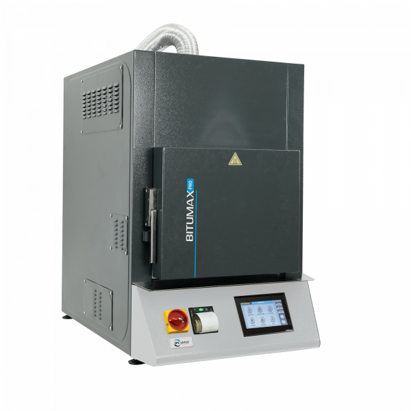 BITUMAX Pro combines an ignition oven with a continuous weighing system that monitors the loss of weight of the asphalt sample and automatically determines, at the end of the test, the binder content and percentage. An independently controlled auxiliary afterburner chamber significantly reduces the furnace emissions.