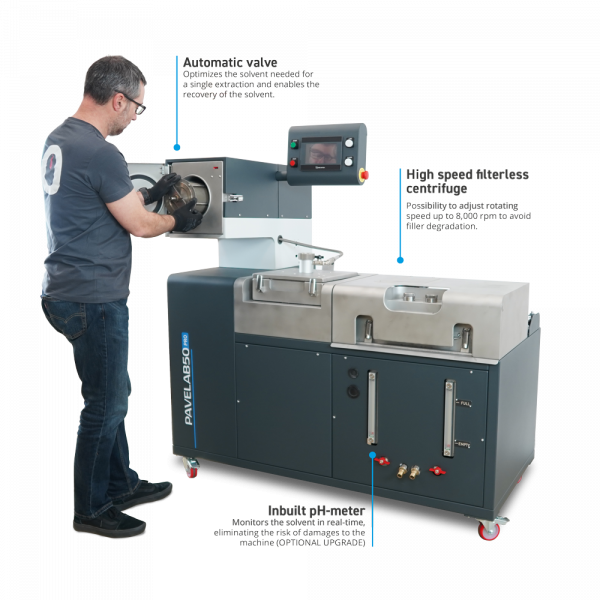 PAVELAB50 PRO is the most advanced system for automatic separation and extraction of bitumen, filler, and aggregates from asphalt samples by use of solvents. It delivers high-precision quantitative determinations of bitumen in asphalt mix for specification acceptance, service evaluation, control, and research.