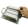 The 62-L0009/G version is used for the determination of linear shrinkage of cement mortars (EN 12617-4). The same mould can be used for testing grouts conforming to EN 12808-4 replacing the standard plugs with the 62-L0010/H2 and placing two 15x40x160 mm plastic inserts 62-L0010/H3 inside each compartment. See accessories. Three gang mould, individually tested with certified instruments. Made of special alloy steel, minimum hardness HV200. The shrinkage measurement has to be done with the 62-L0035/A Length comparator.