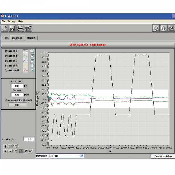 Software for determination of Elastic Modulus on concrete and cement allowing: