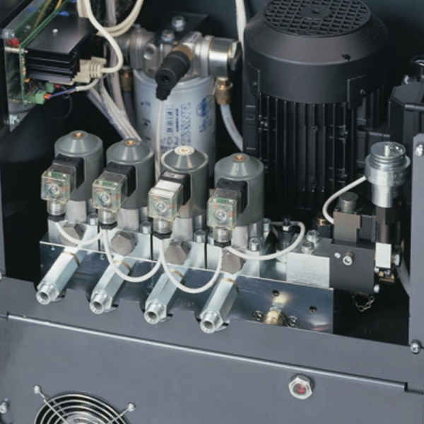 • Hydraulic motorized power pump with automatic double stage mode: low pressure/high flow rate (2l/min) for the fast approach (min.40mm/ min) and high pressure/low flow rate (0.7 l/min) for test execution.