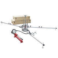 The relatively lightweight (68 kg in total) and small dimensions of the apparatus make it very easy to use and to move from one place to another. The measuring bridge made from aluminium alloy, is very light and has telescopic extensions so It can be positioned in a few minutes with minimum effort. The remote load control and gauge are mounted on the pump and it is not necessary to go near the platen for recording the load. The deformations are measured with three dial indicators.