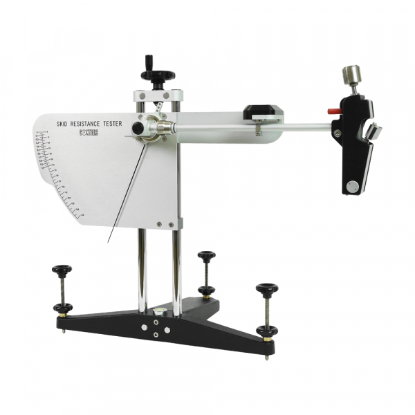Used for the measurement of surface friction properties, the apparatus is suitable for both side and laboratory applications and for Polished Stone Value (PSV) using curved specimens from accelerated polishing test with the accelerated polishing machine conforming to EN 1097-8. It can also be used for testing Paving Stones (EN 1341, EN 1342) and Paving Blocks (EN 1338). The apparatus, originally developed at the Transport and Research Laboratory, U.K., consists of an adjustable pendulum arm, and a spring loaded rubber slider (see accessories) mounted on the end of the arm. During operation the pendulum is raised and then allowed to swing freely, allowing the edge of the rubber slider to skid across the surface of the road or sample. Two versions available: