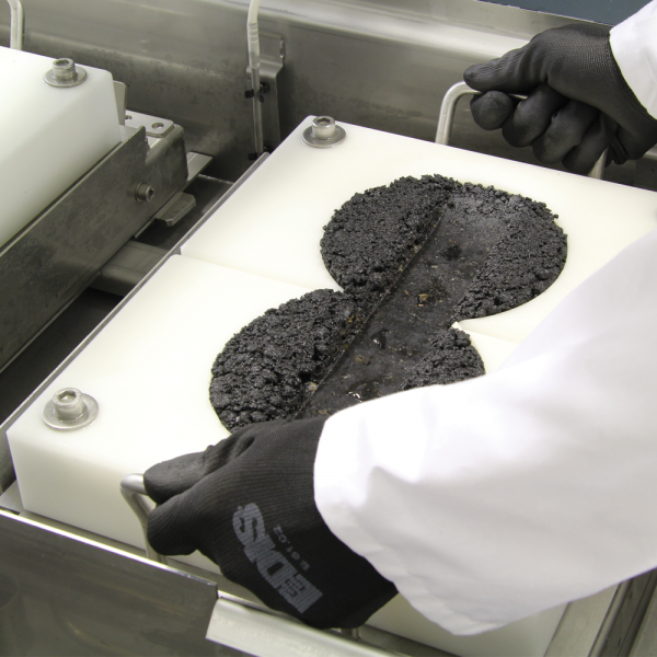 The wheel is moved 230 mm backwards and forwards on the top of the slab, which is fixed. The speed is adjustable via the PC from 20 to 30 cycles per minute (40 to 60 passes). The longest slab dimension is oriented to the wheel's direction of travel. Special slab moulds for circular samples obtained from coring or gyratory compactors are also available. See accessories.