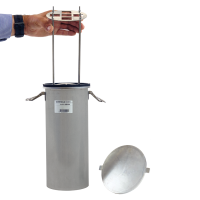 Stainless steel cylinder container and internal stainless steel rack to hold specimens.