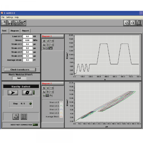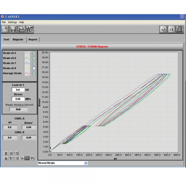 Software for determination of Elastic Modulus on concrete and cement allowing: