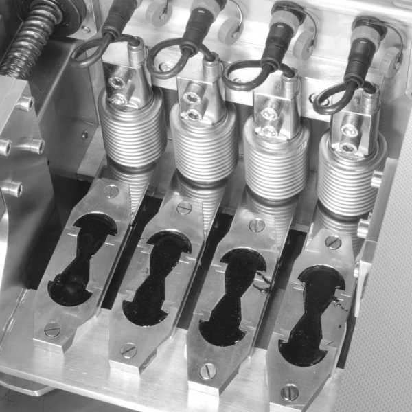 Double-screew rods and mobile carriage enable test speeds from 3 to 200 mm/min. The system also permits the fast return of the carriage at the end of the test (500 mm/min) to reduce dead time and increase productivity. The carriage return is automatic, manual intervention is not required.