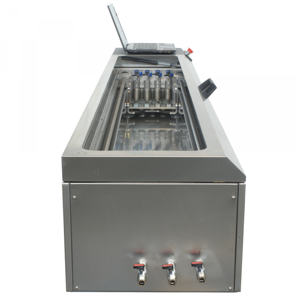 Insulated stainless steel water bath with a heating system located over the entire base surface and a stainless steel cooling coil (for connection to water mains or chiller) distributed over the three side walls assuring temperature uniformity without water turbulence inside the bath. All parts in contact with water are made of stainless steel.