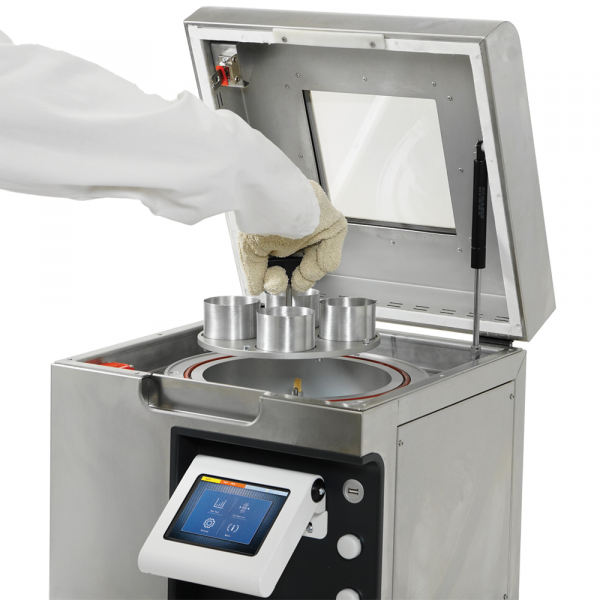 The vacuum chamber can accept either eight 55x35 mm or four 70x45 mm (available as accessories) sample containers. The instrument is supplied complete with temperature traceable calibration certificate, 8 aluminium 55x35 mm sample containers,a  double face sample holder and operator's manual.