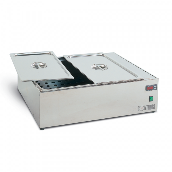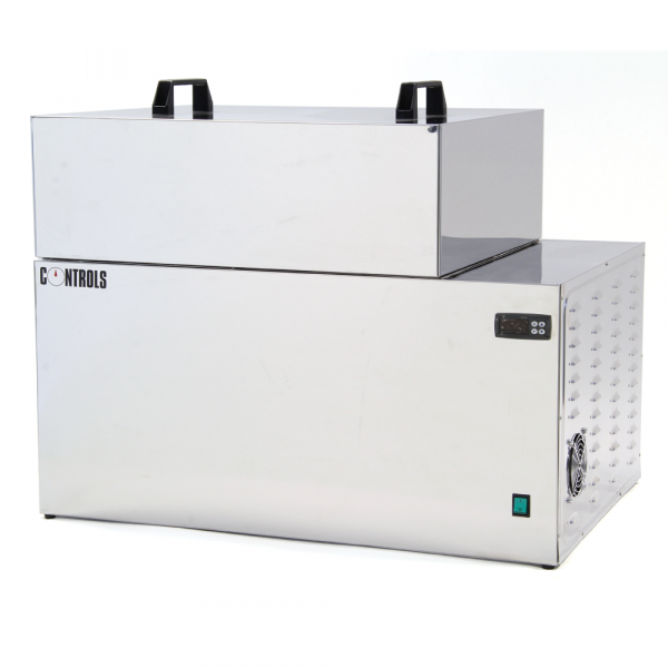 Digital thermoregulator and temperature display, internal and external outer case in stainless steel. Complete with perforated base shelf and cover.
