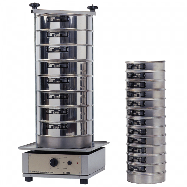 The vertical sieving motion is provided by a very effective electromagnetic unit, which is set to obtain the best result with sand and aggregates. Complete with timer. The shaker can be campleted with the Noise reduction cabinet recommended for use in the CE countries and with the Wet sieving attachment for washing fine materials through the sieves without any loss of sample. See accessories.