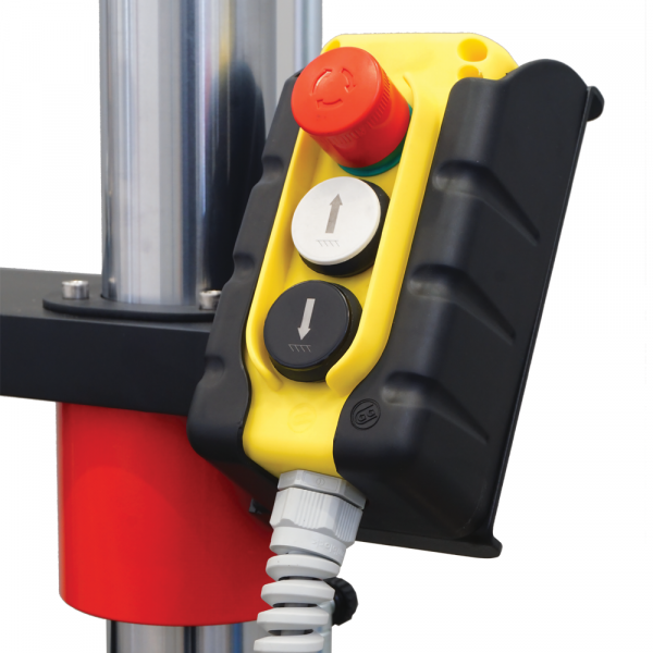 The machine is fitted with two limit switches working at upper and lower full travel and two additional limit switches adjustable by the client in the desired position, according to the specific accessory in use. A remote push-button is used to quickly position the lower crosshead.