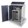 The cabinets are made from steel sheets that can be lined internally with soudproof material in order to reduce the noise level during the machine operation.