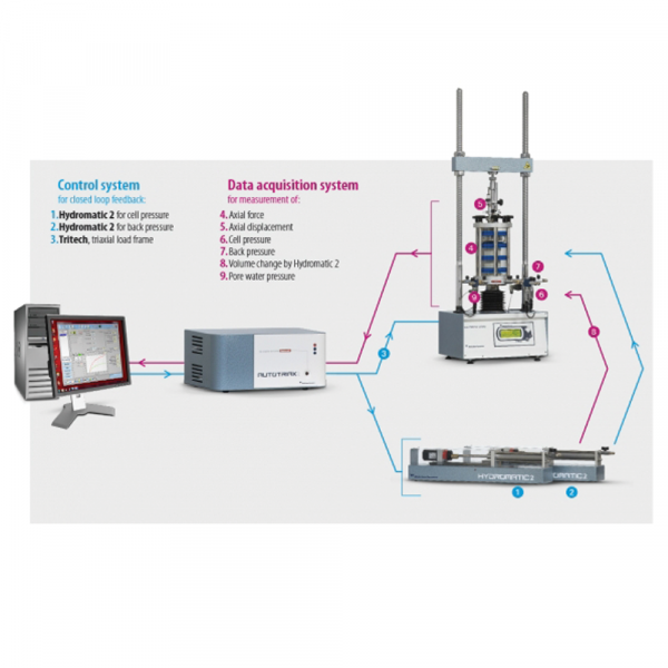 A typical PC controlled fully automatic triaxial configuration includes: