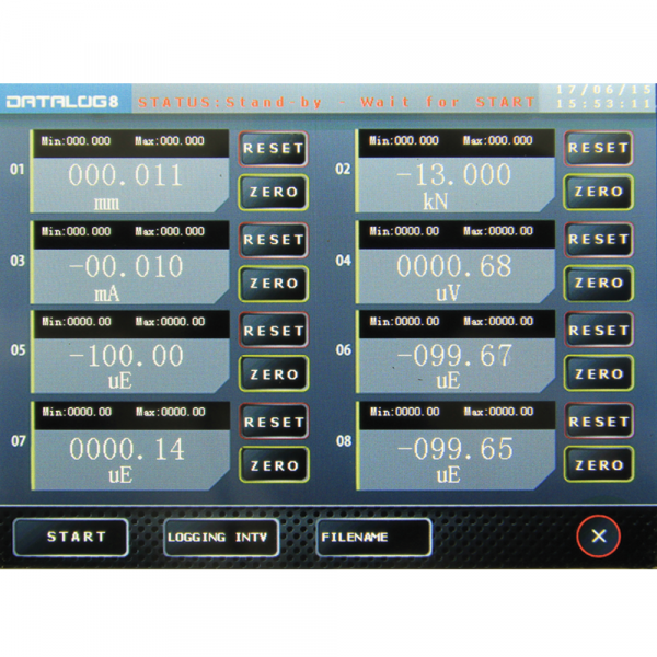 DATALOG 8 is a stand alone data logger for general purpose acquisition, processing and data storage for laboratory and site applications.