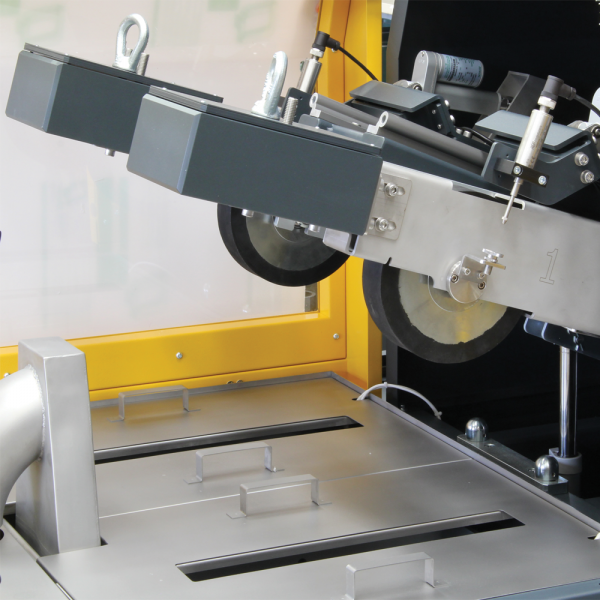 Both versions can be upgraded with automatic  system which lift one of the wheel from the specimen that has reached the rut target continuing the test on the other specimen. See Upgrading options Automatic wheel lifting mechanism.