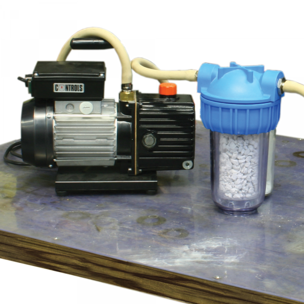 The vacuum pump 86-D2001 has to be used with the air drying unit (86-D2005) filled with silica gel desiccant (86-D0819). This is recommended to avoid/limit water vapour mixing with the oil in the pump, which, in significant concentrations, may cause serious damage to the pump. When the pump will be used intensively, use of the outlet mist filter (86-D2001/3) is also recommended, which collects any oil vapour issuing from the oil reservoir during operation.