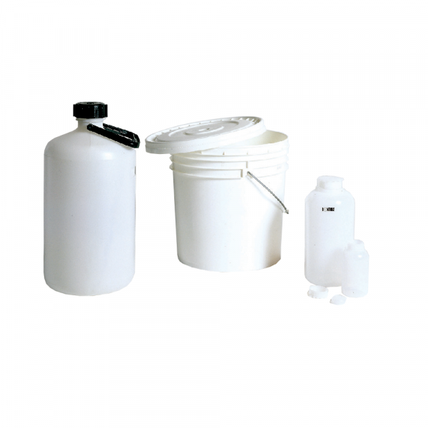 Storage bottles, wash bottles, Plastic containers with airtight lid and handles and Plastic funnels