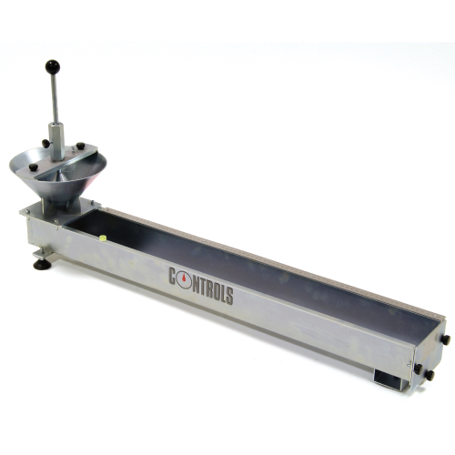Used for determining the flow properties of mortars, grouts, muds and many other type of fluid materials. The apparatus comprises a metal stand supporting the stainless steel cone having inside dimensions of 150 mm inside upper dia. x 280 mm height. When fit with the 10 mm nozzle the total height is 350 mm. The apparatus, as prescribed by EN 445, is supplied complete with 150 mm dia. sieve 2 mm opening, 10 mm dia. nozzle with fitting bush and 1 liter cap. cup. It can also be fit with other nozzles 8, 9, 11, and 13 mm int. dia. See accessories.
