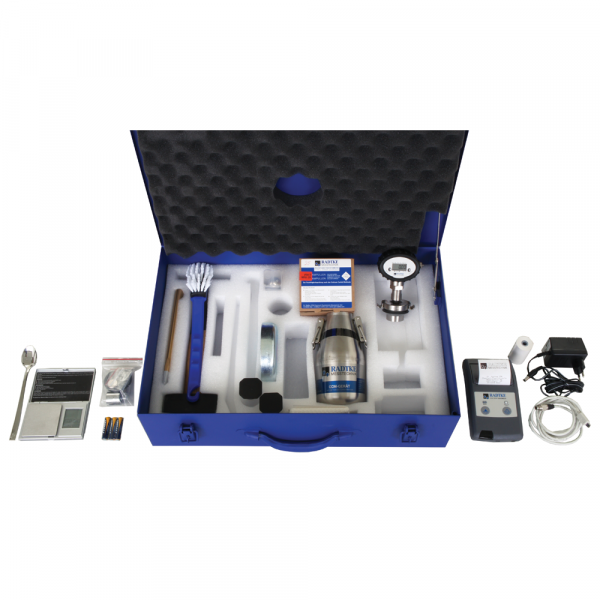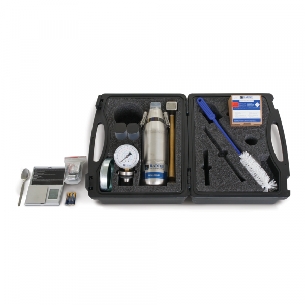 The operating principle is identical for all models: the sample is introduced into the bottle with the reagent and the water in the sample reacts with calcium carbide and produces a gas, the pressure of which is indicated on the manometer and easily converted into the percentage of moisture.